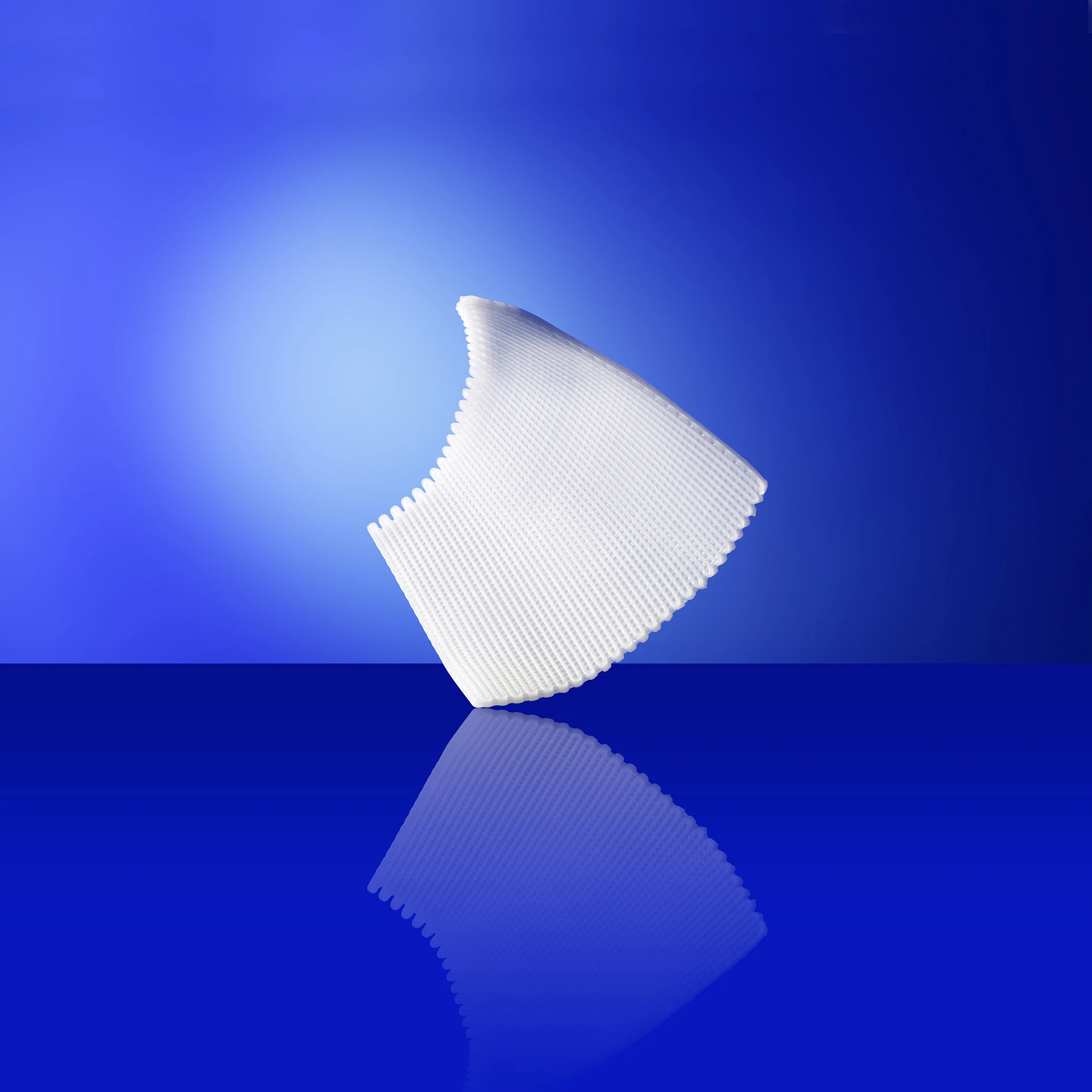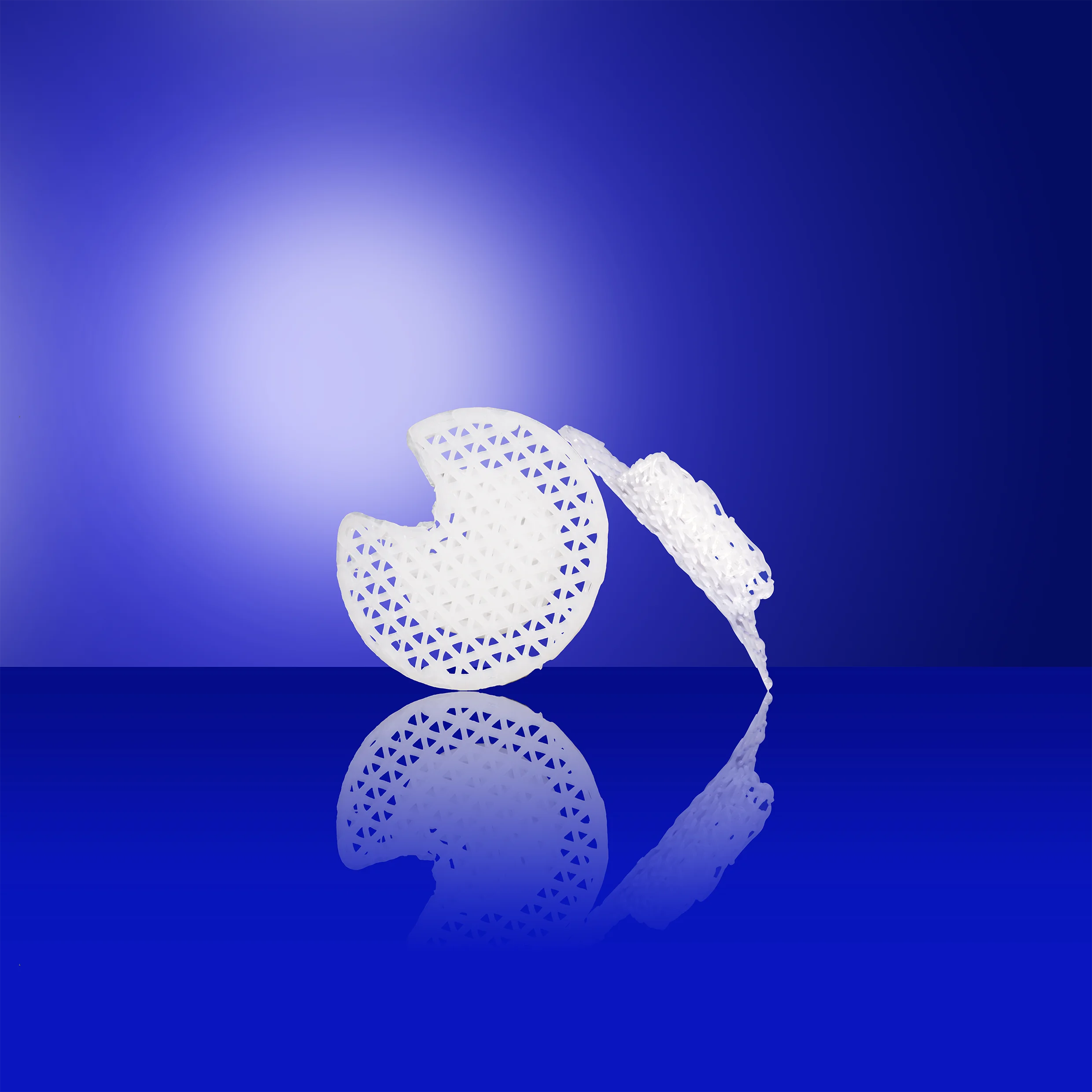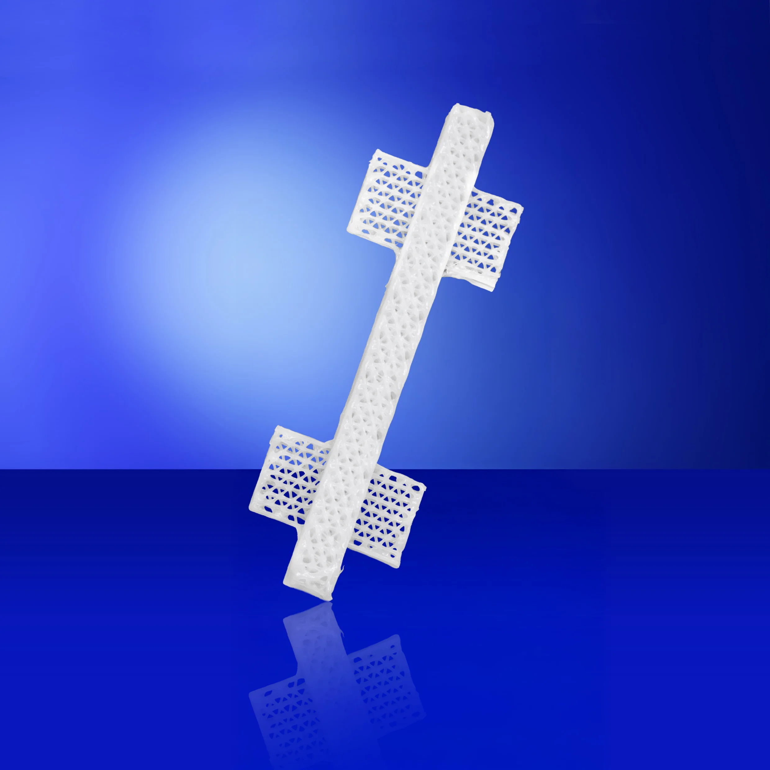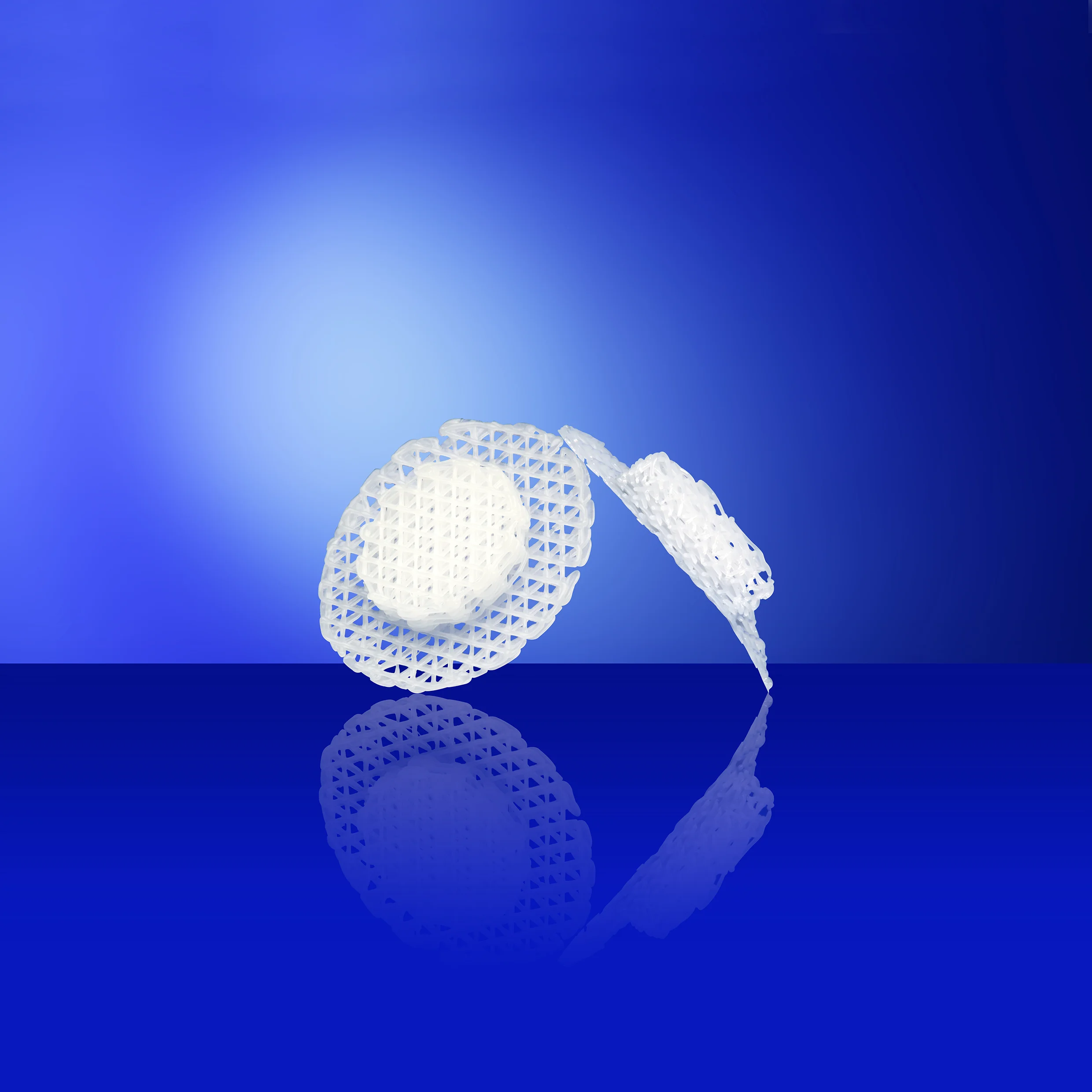 Our devices are made from polycaprolactone. Depending on location of the bone defect in the craniofacial skeleton, a variety of off-the-shelf shapes and sizes are available.